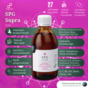 Értékes összetevői: • SPG hidroalkoholos növényi kivonat: Ginseng, Maca, Zöld tea, Tajgagyökér, Guarana mag, Kola dió, Ginkgo biloba • Alga kivonatok: Chlorella mikroalga extrakt, Haematococcus pluvialis alga (Astaxanthin) extrakt • Gyógynövény kivonatok: Kínai csűdfű (Astragalus) extrakt, Bíborkasvirág (Echinacea) extrakt, Goji (Lycium) extrakt, Szegfűszeg extrakt, Kendermag extrakt, Zeaxanthin extrakt, Rozmaring extrakt • Vitaminok: C vitamin (L-aszkorbinsav), Cink, B12 vitamin, B6 vitamin, A vitamin, Folsav, Biotin • Gyümölcs koncentrátumok: Arónia koncentrátum, Szilva koncentrátum, Tőzegáfonya koncentrátum, Gránátalma koncentrátum A részletes termékösszetevők megtalálhatóak a webshopban és a termék címkéjén.